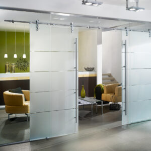 Ευέλικτο σύστημα συρόμενης πόρτας για ελεύθερη διέλευση φωτός. Εμφανή ανοξείδωτα εξαρτήματα σημειακής στήριξης, σύγχρονης αισθητικής με μοντέρνο φινίρισμα. παρουσίαση 8300 τεχνικά χαρακτηριστικά οδηγός εγκατάστασης